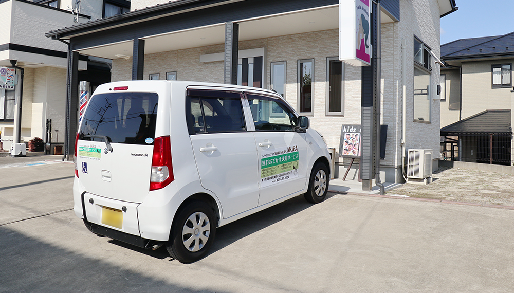 足腰が弱くなった方、免許を返納した方などのために、ヘアーサロンアキラでは無料で送迎をおこなっております。お気軽にお問い合わせください。【予約方法】お電話:0294-33-1022